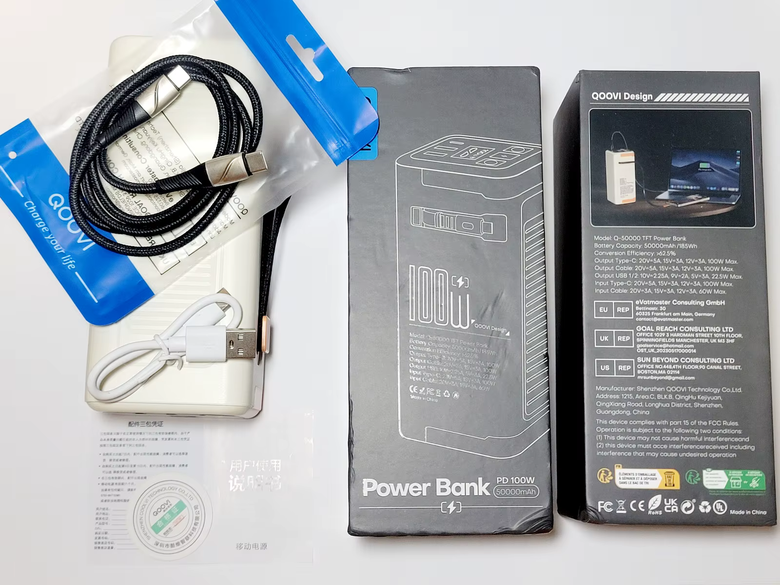 QOOVI 50000mAh Power Bank PD 100W Fast Charging Portable Large Battery Capacity Power Station For iPhone Laptop Samsung Xiaomi